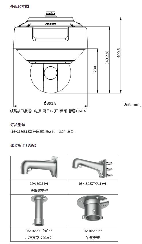星光級180°全景一體式網(wǎng)絡(luò)高清智能球機(jī)( iDS-2DP0818ZIX-D/253(5mm))